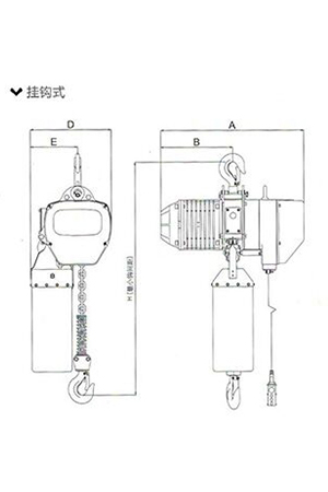 掛鉤式環(huán)鏈電動葫蘆(0.25T-5T) 尺寸參考: