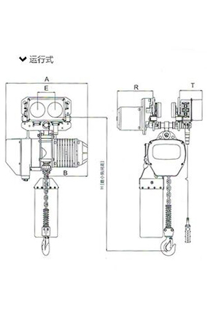 運(yùn)行式環(huán)鏈電動葫蘆(0.25T-5T) 尺寸參考:
