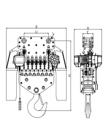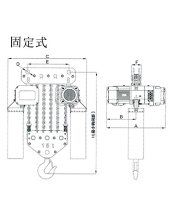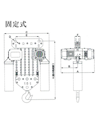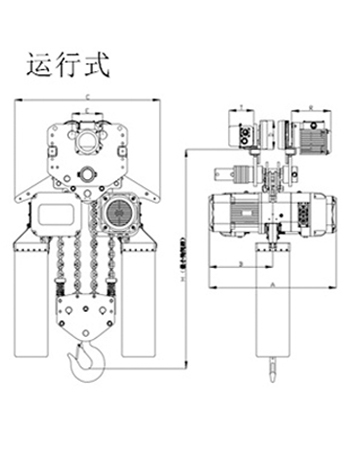 運行式環(huán)鏈電動葫蘆(30T-50T)尺寸參數(shù): | ||||||